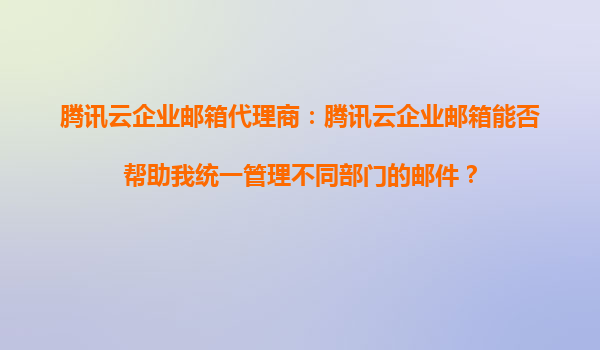 2025-09-16腾讯云企业邮箱代理商:腾讯云企业邮箱能否帮助我统一管理不同部门的邮件? 在当今快速发展的商业环境中,企业邮件系统已成为日常沟通不可或缺的一部分。随着企业规模的扩大,如何高效管理不同部门的邮件、确保信...