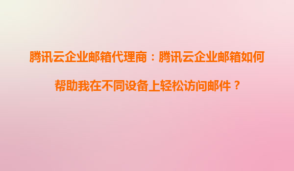 2025-09-16腾讯云企业邮箱代理商:腾讯云企业邮箱如何帮助我在不同设备上轻松访问邮件? 引言:企业邮箱的多设备访问需求 在现代办公场景中,员工可能需要通过电脑、手机、平板等多种设备随时...