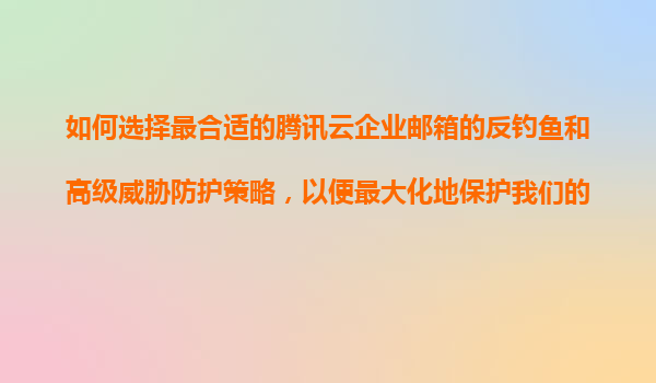 2025-11-11如何选择最合适的腾讯云企业邮箱反钓鱼和高级威胁防护策略 一、企业邮箱安全防护的重要性 在数字化转型的浪潮中,企业邮箱已成为商务沟通的核心工具。然而,随之而来的网络钓鱼、恶意软件、数据泄露等威胁...