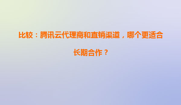 2025-11-11腾讯云代理商与直销渠道长期合作选择对比 一、前言 随着企业数字化转型加速,云计算服务成为企业IT基础设施的重要组成部分。腾讯云作为国内领先的云服务提供商,为企业提供了多样化的服务接入渠道。面对代理商和直...