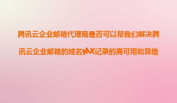 2025-11-11腾讯云企业邮箱代理商能否解决MX记录高可用与异地灾备难题? 一、腾讯云企业邮箱的核心优势 腾讯云企业邮箱基于全球领先的云计算架构,具备以下核心能力: 全球节点覆盖:依托腾讯云全球27个...