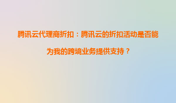 2025-09-16腾讯云代理商折扣:腾讯云的折扣活动能否为跨境业务提供支持? 一、跨境电商的云端需求与挑战 随着全球电商市场的快速扩张,跨境业务对云计算的需求日益增长。企业需要...