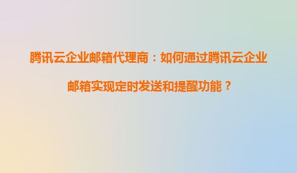 2025-09-16腾讯云企业邮箱代理商:如何通过腾讯云企业邮箱实现定时发送和提醒功能? 一、腾讯云企业邮箱的核心优势 作为国内领先的企业级邮箱服务,腾讯云企业邮箱凭借以下优势成为众多企业的首选...