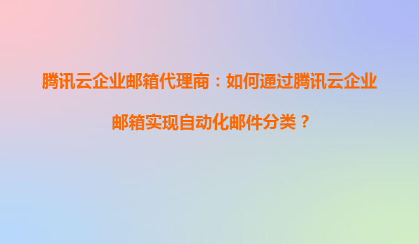 2025-09-16腾讯云企业邮箱代理商:如何通过腾讯云企业邮箱实现自动化邮件分类? 一、企业邮件管理的痛点与自动化分类的价值 在数字化办公时代,企业邮箱日均处理大量邮件,人工分类效率低、易出错...