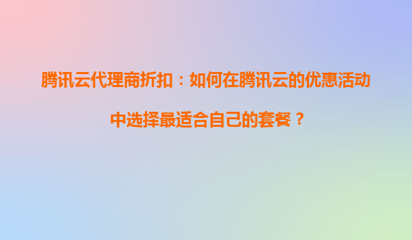 2025-09-16腾讯云代理商折扣:如何在腾讯云的优惠活动中选择最适合自己的套餐? 腾讯云的优势 腾讯云作为国内领先的云计算服务提供商之一,凭借其强大的技术实力和丰富的...
