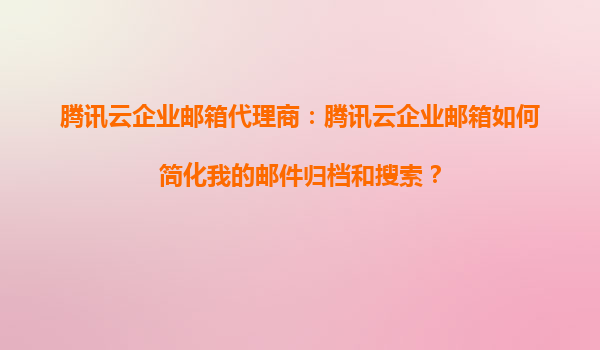2025-09-16腾讯云企业邮箱代理商:腾讯云企业邮箱如何简化我的邮件归档和搜索? 一、企业邮件管理的痛点 在数字化办公时代,电子邮件是企业内外沟通的重要工具。然而,随...