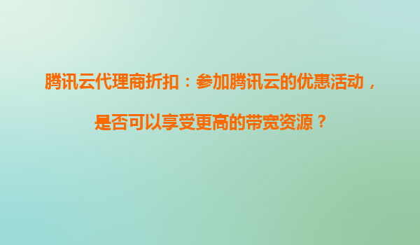 2025-09-16腾讯云代理商折扣:参加腾讯云的优惠活动,是否可以享受更高的带宽资源? 一、腾讯云代理商折扣概述 腾讯云作为国内领先的云计算服务商,通过代理商渠道为用户提供多样化的优惠活动。代理商折扣通常涵盖了...