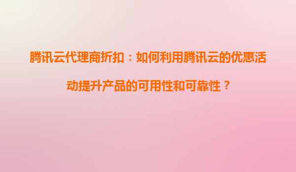 2025-09-16腾讯云代理商折扣:如何利用腾讯云的优惠活动提升产品的可用性和可靠性? 一、腾讯云的核心优势 腾讯云作为国内领先的云计算服务商,凭借腾讯集团的生态资源和技术积累,为企业提供了高...