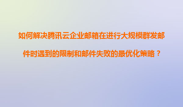 2025-11-11如何解决腾讯云企业邮箱在进行大规模群发邮件时遇到的限制和邮件失败的最优化策略 问题背景与挑战 企业邮箱在日常业务运营中起到关键作用,尤其是大规模群发邮件(如营销推广、通知通告)的场景下。然而,由于...
