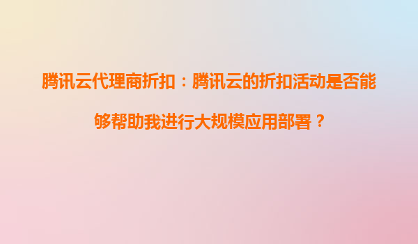 腾讯云代理商折扣:如何助力企业实现大规模应用部署? 引言 随着数字化转型的加速,云计算已成为企业高效运营的核心支柱。腾讯云作为国内领先的云服务提供商,...