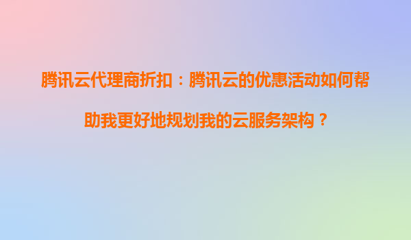 2025-09-16腾讯云代理商折扣如何助力优化您的云服务架构规划 引言:云服务架构规划的重要性 在数字化时代,高效的云服务架构是企业实现业务敏捷性和成本可控的关键。腾讯云凭借其丰富的产品矩阵和代理商专属折扣...