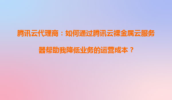 2025-09-06腾讯云代理商:如何通过腾讯云裸金属云服务器帮助降低业务运营成本? 引言:企业上云的运营成本挑战 在数字化转型浪潮中,企业上云已成必然趋势,但如何平衡性能需求与成本控制成为关键...