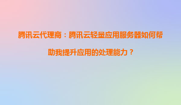 2025-09-05腾讯云代理商:腾讯云轻量应用服务器如何帮助您提升应用处理能力 在数字化浪潮的推动下,企业和个人开发者对云计算的需求日益增长。腾讯云轻量应用服务器作为一款高性能、易用性强的云计算产品,能够显著提...