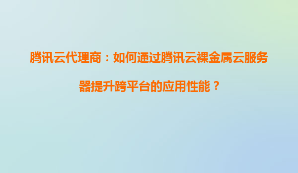2025-09-05腾讯云代理商:如何通过腾讯云裸金属云服务器提升跨平台的应用性能? 引言:跨平台应用性能的挑战与机遇 在数字化转型的浪潮中,跨平台应用需求激增,企业对计算性能、资源隔离和稳...