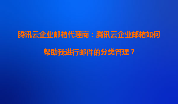 2025-09-04腾讯云企业邮箱代理商:腾讯云企业邮箱如何帮助我进行邮件的分类管理? 一、腾讯云企业邮箱的智能化分类管理功能 作为腾讯云企业邮箱代理商,我们深知企业对高效邮件管理的需求。腾讯云企业邮箱通...
