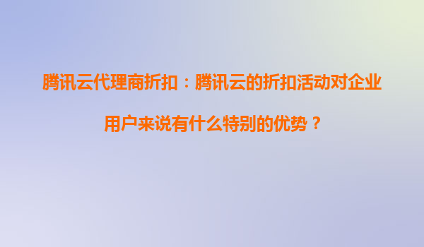 腾讯云代理商折扣:腾讯云的折扣活动对企业用户有什么特别优势? 一、腾讯云的核心竞争力 作为国内领先的云计算服务商,腾讯云凭借其技术实力和生态优势,为企业用户提供全方位数字化解决方案: ...