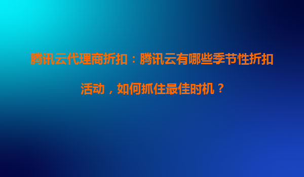 2025-09-04腾讯云代理商折扣:如何抓住季节性活动以最大化收益 腾讯云的核心优势 腾讯云作为国内领先的云服务提供商,凭借其稳定高效的全球基础设施、丰富的产品矩阵以及强大的技术生态,为用户提供从计算、存储...