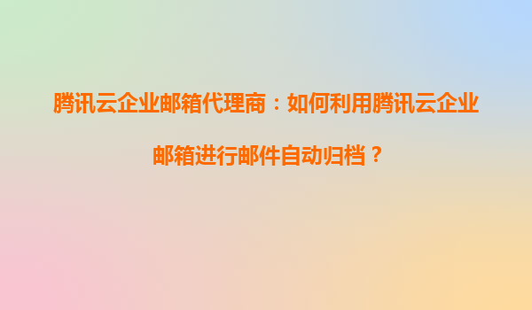 2025-09-04腾讯云企业邮箱代理商邮件自动归档功能解析 一、什么是邮件自动归档 邮件自动归档是指通过预设规则或系统自动执行的方式,将往来邮件按照特定条件(如时间、主题、发件人等)分类存储到指定位置的过程。腾讯云企业...