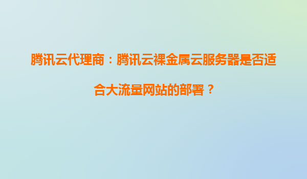 2025-09-04腾讯云代理商:腾讯云裸金属云服务器是否适合大流量网站的部署? 一、腾讯云裸金属云服务器概述 腾讯云裸金属云服务器(BareMetalServer,简称BM)是一种结合了物理机性能和云服务器灵活性的高性能计...