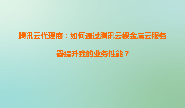 2025-09-03腾讯云代理商:如何通过腾讯云裸金属云服务器提升我的业务性能? 一、腾讯云裸金属云服务器的核心优势 腾讯云裸金属云服务器(BareMetalInstance)是一种兼具...