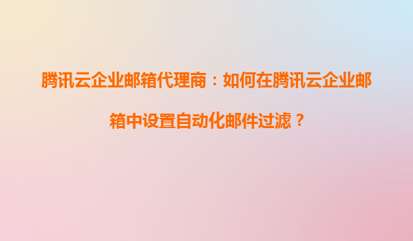 腾讯云企业邮箱代理商:如何在腾讯云企业邮箱中设置自动化邮件过滤? 在当今数字化办公环境中,企业邮箱作为日常沟通的重要工具,其安全性、效率和便捷性显得尤为关键。腾讯云企业邮箱凭借其强大的功能和稳定的...