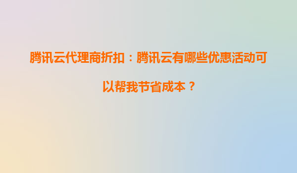 腾讯云代理商折扣:腾讯云有哪些优惠活动可以帮我节省成本? 随着云计算技术的快速发展,越来越多的企业和个人选择将业务迁移到云端。腾讯云作为国内领先的云计算服务提供商,凭借其强大的基础设施和...