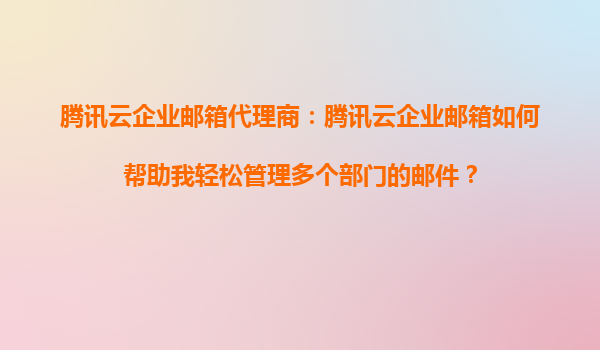 2025-09-02腾讯云企业邮箱代理商:腾讯云企业邮箱如何帮助我轻松管理多个部门的邮件? 在现代企业管理中,邮件沟通是不可或缺的一部分。尤其是对于拥有多个部门的企业而言,如何高效、安全地管理各部门的邮件往来成...