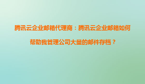 2025-09-02腾讯云企业邮箱代理商:腾讯云企业邮箱如何帮助我管理公司大量的邮件存档? 一、引言 在当今信息化社会,电子邮件已成为企业日常沟通和业务往来的重要工具。随着企业规模的扩大和业务的增长,邮件...