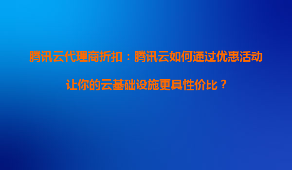 腾讯云代理商折扣:如何通过优惠活动让企业云设施更具性价比 在数字化转型浪潮下,云计算已成为企业降本增效的核心工具。作为国内领先的云服务商,腾讯云不仅提供稳定可靠的技术支持,更通过多样化的代理商优惠活动...