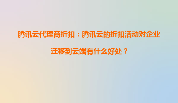 2025-09-02腾讯云代理商折扣:腾讯云的折扣活动对企业迁移到云端有什么好处? 一、企业上云的需求与挑战 随着数字化转型的加速,越来越多的企业选择将业务迁移到云端。云...