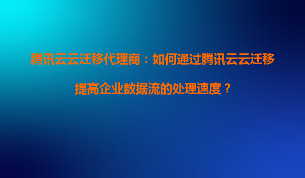 2025-08-31腾讯云云迁移代理商:如何通过腾讯云云迁移提高企业数据流的处理速度? 引言 在数字化转型的浪潮中,企业数据流的处理速度直接影响业务效率和竞争力。腾讯云云迁移服务...