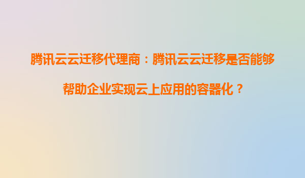 2025-08-31腾讯云云迁移代理商:腾讯云云迁移如何助力企业实现云上应用容器化 一、企业云上应用容器化的核心挑战 在数字化转型浪潮中,容器化技术凭借轻量化、高可移植性和弹性扩展等优势,成为企...