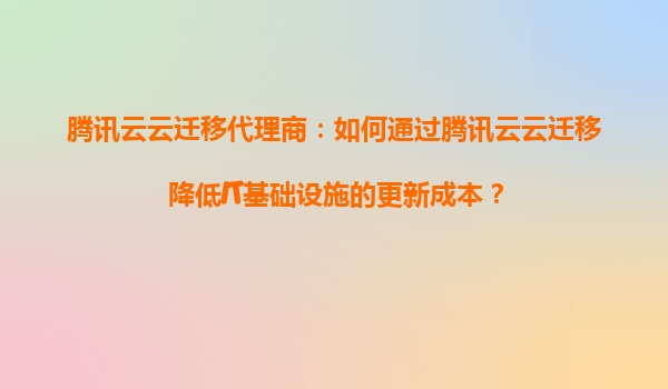 2025-08-31腾讯云云迁移代理商:如何通过腾讯云云迁移降低IT基础设施的更新成本? 一、腾讯云云迁移的核心优势 腾讯云作为国内领先的云计算服务提供商,凭借其强大的技术实力和丰富的行业经验,为企业提供了...