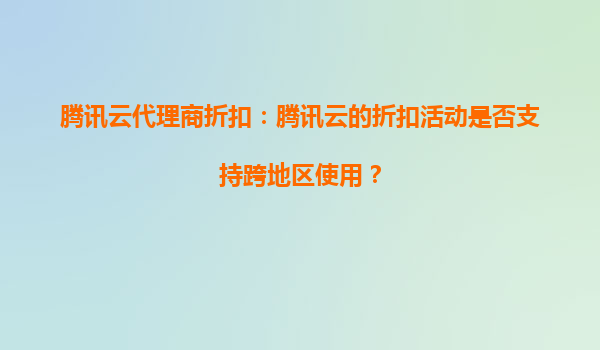 2025-08-30腾讯云代理商折扣:腾讯云的折扣活动是否支持跨地区使用? 一、腾讯云代理商折扣概述 腾讯云作为国内领先的云计算服务提供商,通过代理商渠道为用户提供多样化的折扣活动。代理商折扣通常涵盖云服务器、数...