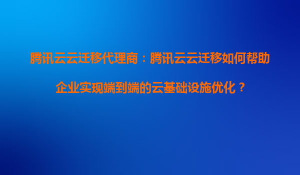 2025-08-30腾讯云云迁移代理商:腾讯云云迁移如何帮助企业实现端到端的云基础设施优化? 一、企业上云的挑战与腾讯云迁移的价值 在数字化转型浪潮中,企业面临传统IT架构成本高、扩展性差、运维复...