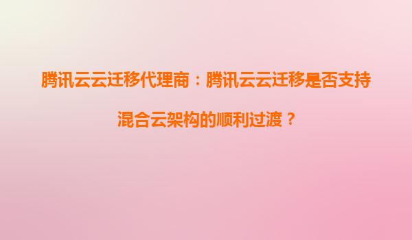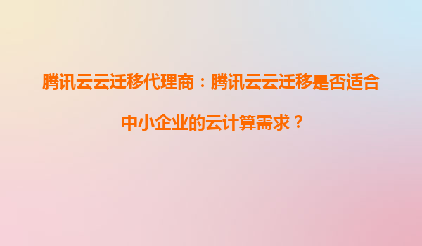 2025-08-29腾讯云云迁移代理商:腾讯云云迁移是否适合中小企业的云计算需求? 一、腾讯云云迁移的核心优势 腾讯云作为国内领先的云计算服务商,其云迁移服务具备以下核心优势: 全栈技...