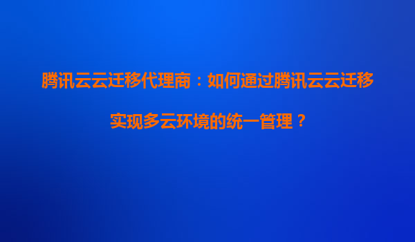 2025-08-29腾讯云云迁移代理商:如何通过腾讯云云迁移实现多云环境的统一管理? 一、多云环境管理的挑战与需求 随着企业数字化转型加速,多云战略成为主流选择。然而,跨...