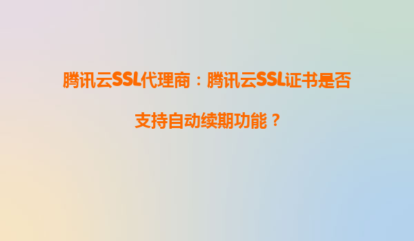 2025-08-29腾讯云SSL代理商:腾讯云SSL证书是否支持自动续期功能? 一、腾讯云SSL证书的自动续期功能 腾讯云SSL证书作为国内领先的数字证书服务,提供了高效、安全的HTTPS...