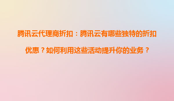 2025-08-29腾讯云代理商折扣:腾讯云有哪些独特的折扣优惠?如何利用这些活动提升你的业务? 一、腾讯云的核心优势与代理商价值 腾讯云作为国内领先的云计算服务商,凭借其强大的技术实力和生态资源,为代理商提供了...