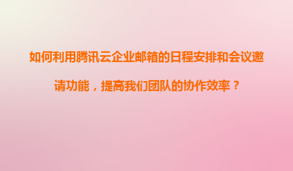2025-11-09腾讯云企业邮箱的日程管理与会议功能如何赋能团队协作 在数字化转型加速的今天,高效协作工具已成为企业发展的刚需。腾讯云企业邮箱凭借其深度融合的日程安排与会议邀请功能,为团队提供了丝滑流畅的协同体验。本文...