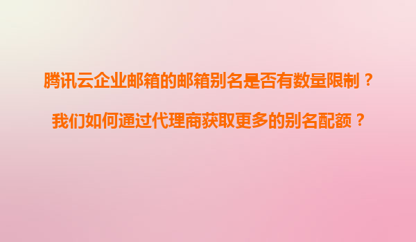 腾讯云企业邮箱别名数量限制与配额获取指南 一、腾讯云企业邮箱别名功能介绍 企业邮箱别名是指用户主邮箱账号的附加名称,可以接收发送到该别名的邮件,但无法直接用别名登录或发送邮件。例如:主账号为zhangsa...