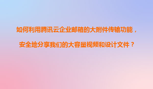 2025-11-09如何利用腾讯云企业邮箱的大附件传输功能,安全地分享大容量视频和设计文件? 在日常办公中,视频、设计文件等大容量文件的传输需求日益增多,而传统的邮件附件因容量限制往往无法满足需求。腾讯云企业邮箱的“...