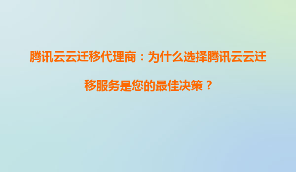 2025-08-28腾讯云云迁移代理商:为什么选择腾讯云云迁移服务是您的最佳决策? 在数字化转型的浪潮中,企业上云已成为提升业务敏捷性和竞争力的关键一步。然而,云迁移过程复杂且充满挑战,如何选择可靠的云服务提供商至关...