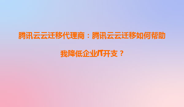 2025-08-28腾讯云云迁移代理商:腾讯云云迁移如何帮助我降低企业IT开支? 在数字化转型的浪潮中,企业IT基础设施的优化成为提升竞争力的关键。传统IT架构的高昂维护成本、低效的资源利用率以及复杂的运维管理,促使越来越...