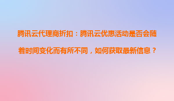 2025-08-28腾讯云代理商折扣:腾讯云优惠活动是否会随着时间变化而有所不同,如何获取最新信息? 在当今数字化时代,云计算服务已成为企业数字化转型的重要基础设施。腾讯云作为国内领先的云计算服务提供商,凭借其强大的...