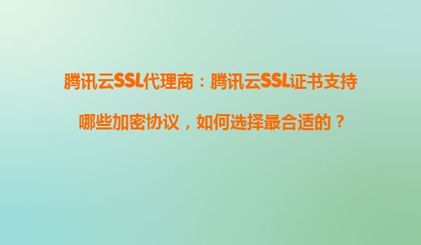 2025-08-28腾讯云SSL代理商:腾讯云SSL证书支持哪些加密协议,如何选择最合适的? 一、腾讯云SSL证书支持的加密协议 腾讯云SSL证书作为国内领先的证书服务提供商,支持多...