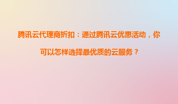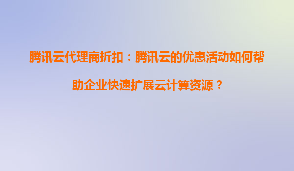 腾讯云代理商折扣:腾讯云的优惠活动如何帮助企业快速扩展云计算资源? 一、腾讯云的核心优势与代理商折扣的价值 腾讯云作为国内领先的云计算服务商,凭借其全球化的基础设施、稳定的性能表现和丰富的产品...