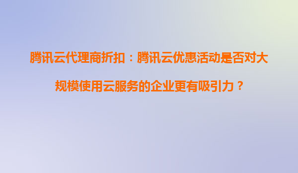 2025-08-28腾讯云代理商折扣:腾讯云优惠活动是否对大规模使用云服务的企业更有吸引力? 随着云计算技术的快速发展,越来越多的企业开始将业务迁移到云端。腾讯云作为国内领先的云服务提供商之一,凭借其强大的技术实力和...