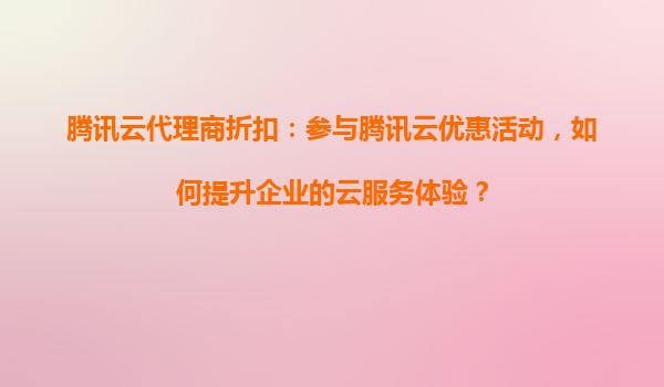 2025-08-28腾讯云代理商折扣:参与腾讯云优惠活动,如何提升企业的云服务体验? 一、腾讯云的核心优势与代理商折扣的价值 腾讯云作为国内领先的云计算服务商,凭借其强大的技术实力和丰富的行业经验,为企业提供...