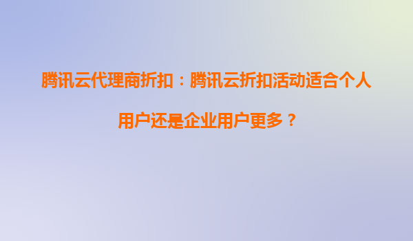 2025-08-27腾讯云代理商折扣:腾讯云折扣活动适合个人用户还是企业用户更多? 引言 随着云计算技术的快速发展,越来越多的个人用户和企业开始选择云服务来满足其计算、存...